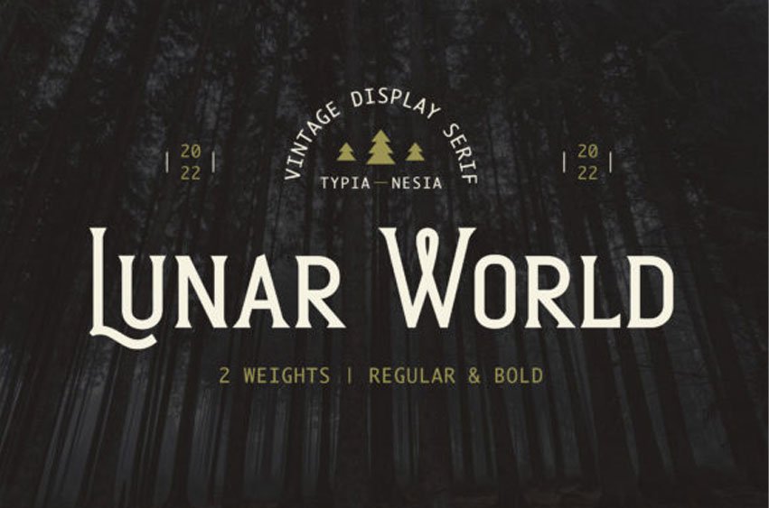 Lunar World Font is suitable for any design needs: logo, branding, modern advertising design, vintage garage design, adventure/mountain hiking brand, hardcore music, animation or movie, logos, retro summer poster quote, book/novel cover Title, editorial design, website/blog, card, and more.